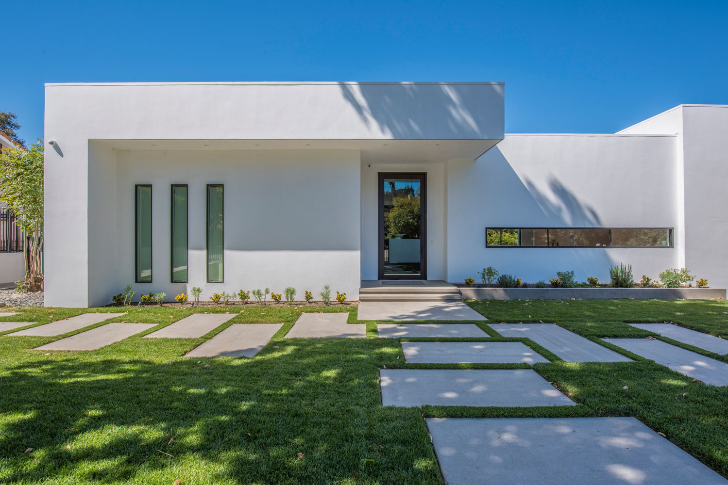 Stunning, one-story modern home in Woodland Hills off of Winnetka, south of Ventura Blvd. ! Newly rebuilt on a gated lot, featuring 5 BR - 5.5 BA and an office in approx. 4,500 sq. ft. , and large 18,805 sq. ft. flat lot. Gourmet kitchen features contemporary cabinets, Miele appliances, island with bar seating, Caesar stone counters, and walk-in pantry. Kitchen opens to dining area and bright family room with Italian porcelain accent wall with fireplace. Two sets of pocket glass doors lead to large backyard featuring spacious grassy area, large Trex deck, seating area with fireplace, BBQ, and pool/spa. Master suite features sliding doors to patio, spacious walk-in closet, and master bath with custom tilework. Home is completed by entertainer and designer details such as surround sound, 12' ceilings, Spanish porcelain floors, Crestron smart home system, solar panels, and security system with alarm/cameras.